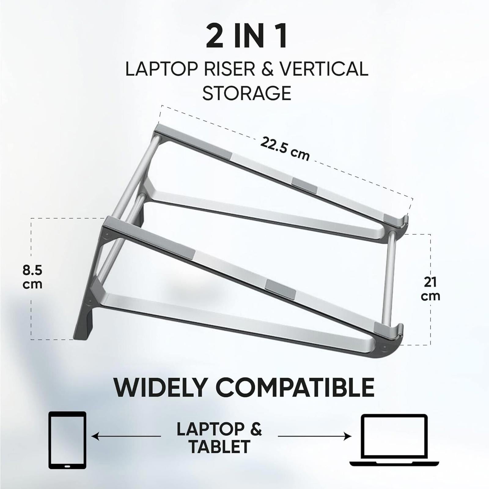 2 In 1 Laptop stand Riser Vertical Storage Aluminium and Ergonomically Designed