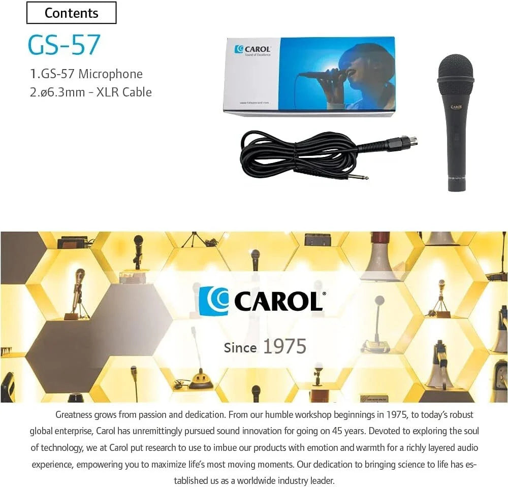 CAROL GS-57 Cardioid Dynamic Microphone Vocal for Presentation & Home Studio, Stage, Shock Absorber Effects Compatible With Amplifier, Speech, and Indoor Activities w/ 14.8ft XLR to 1/4"(6.35mm) Cable