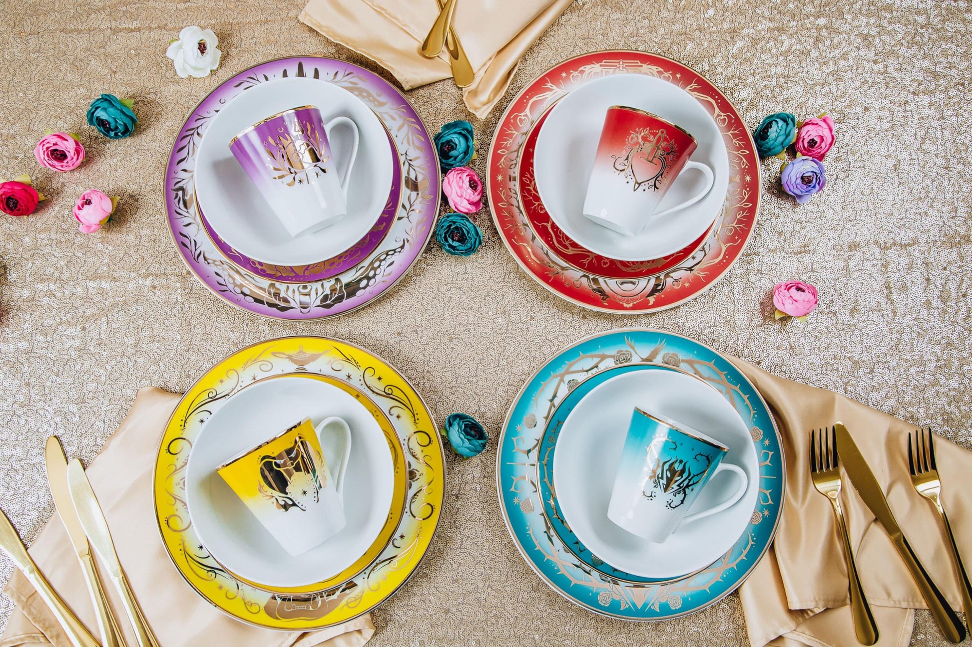 This Disney Villain-inspired dish set features four wicked place setting themes.