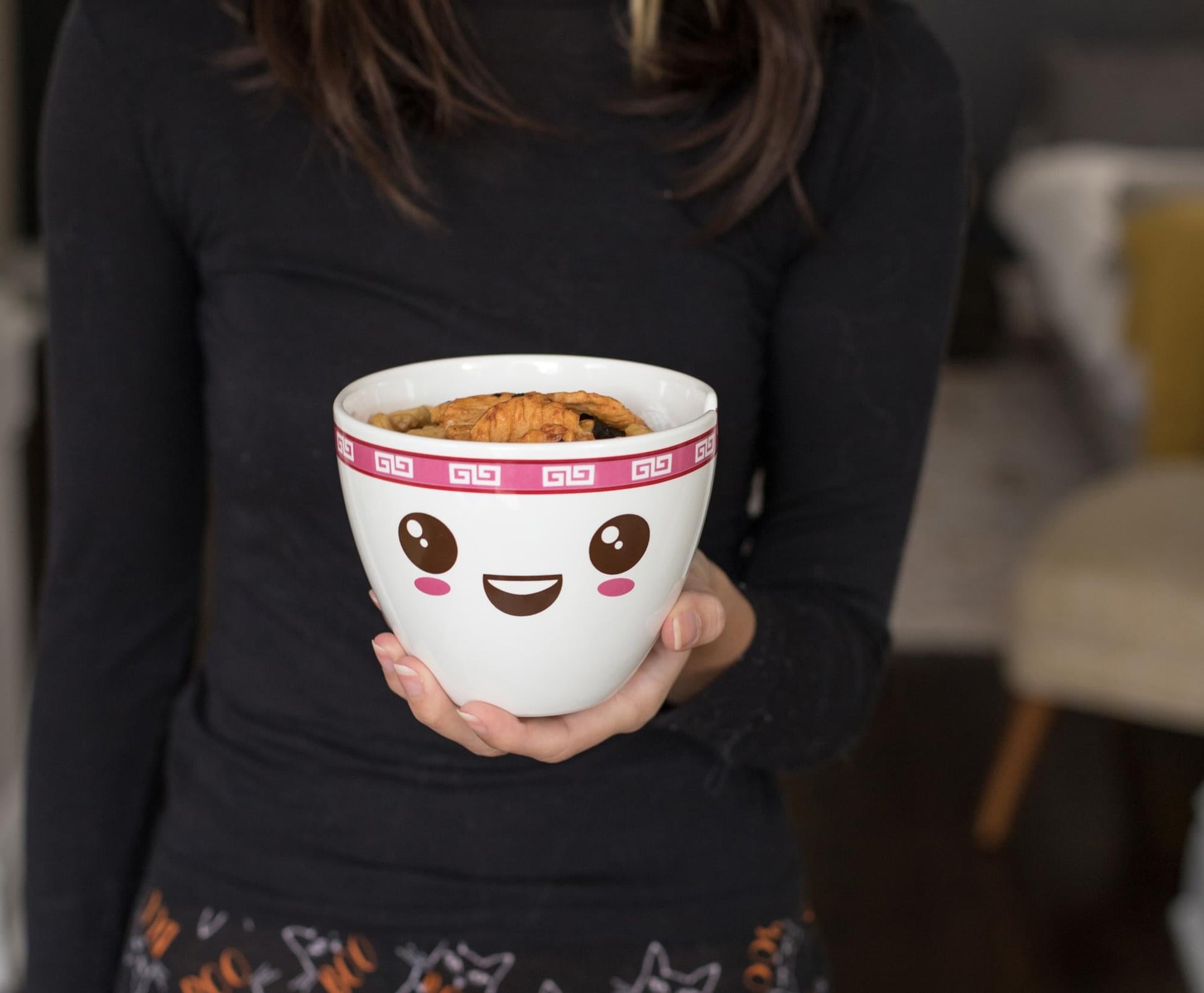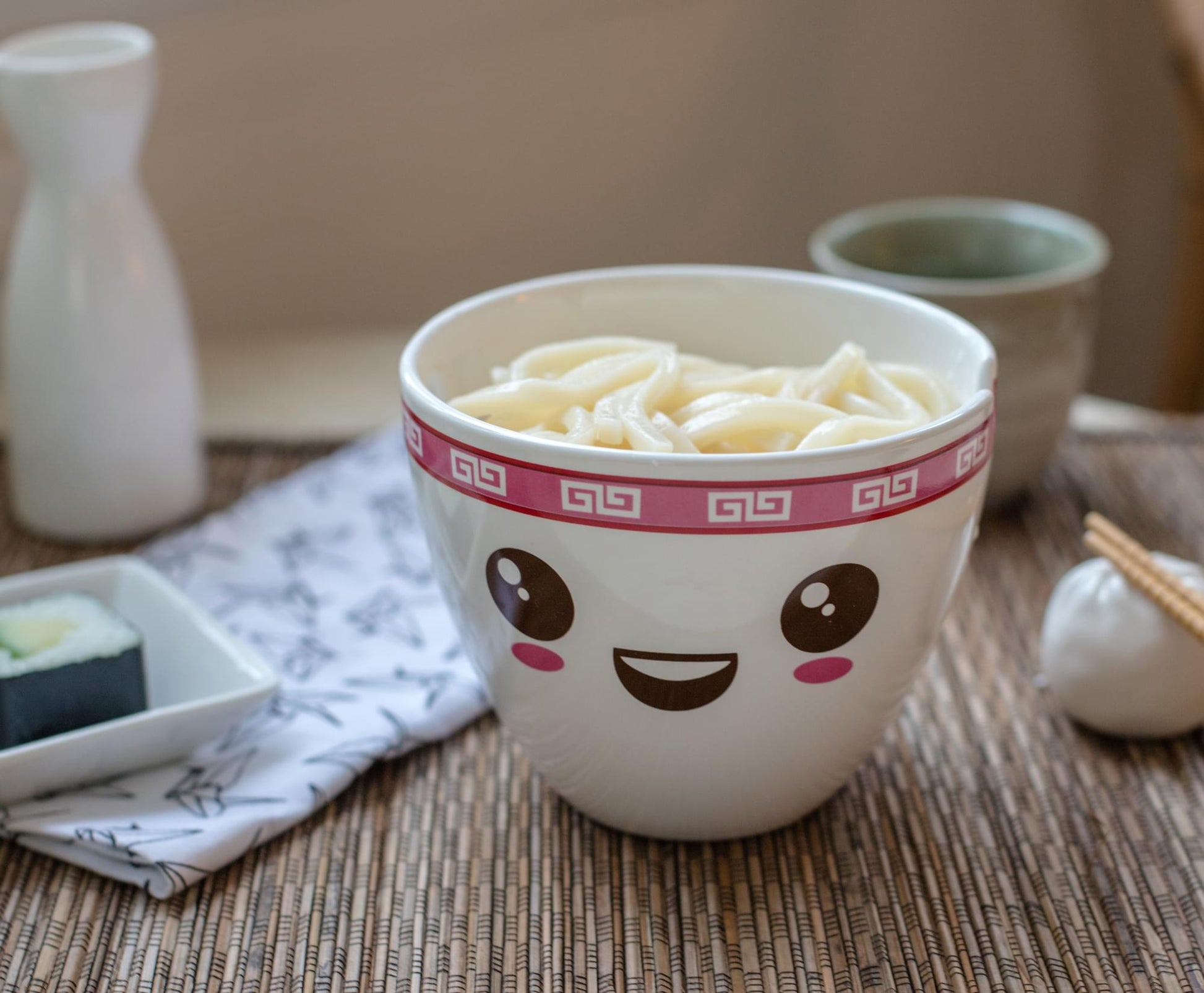 Taste the authentic flavors of Asian cuisine with this Miso Hungry Ramen Bowl Set. Slurp noodles in style using this fun ramen bowl, featuring a red trim and text that reads, "Miso Hungry Udon Even Know." A cartoonish, kawaii-style smiley face adorns the other side of the ramen bowl for an extra touch of cuteness.