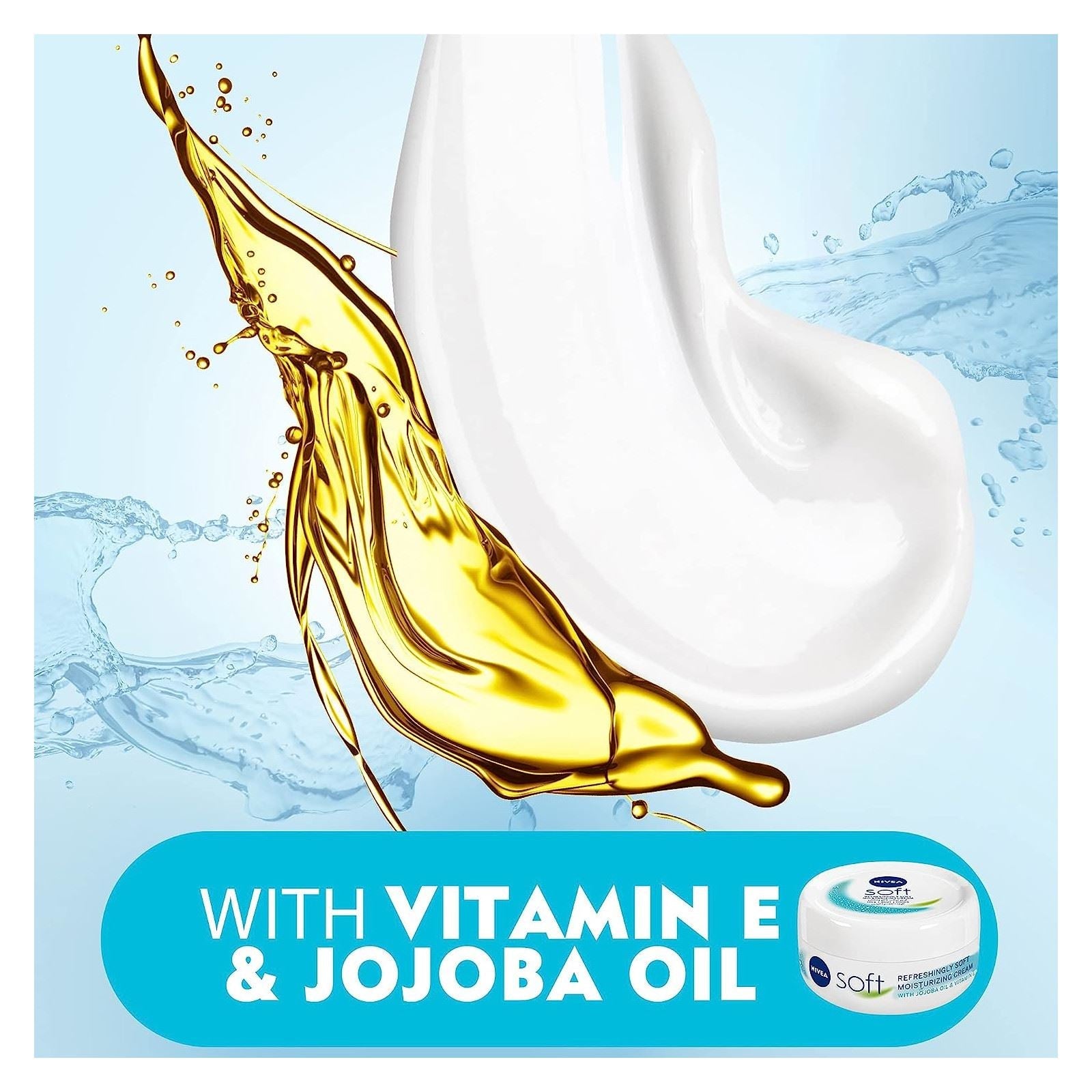 - Nivea Soft Moisturising Cream is infused with Vitamin E and Jojoba Oil.