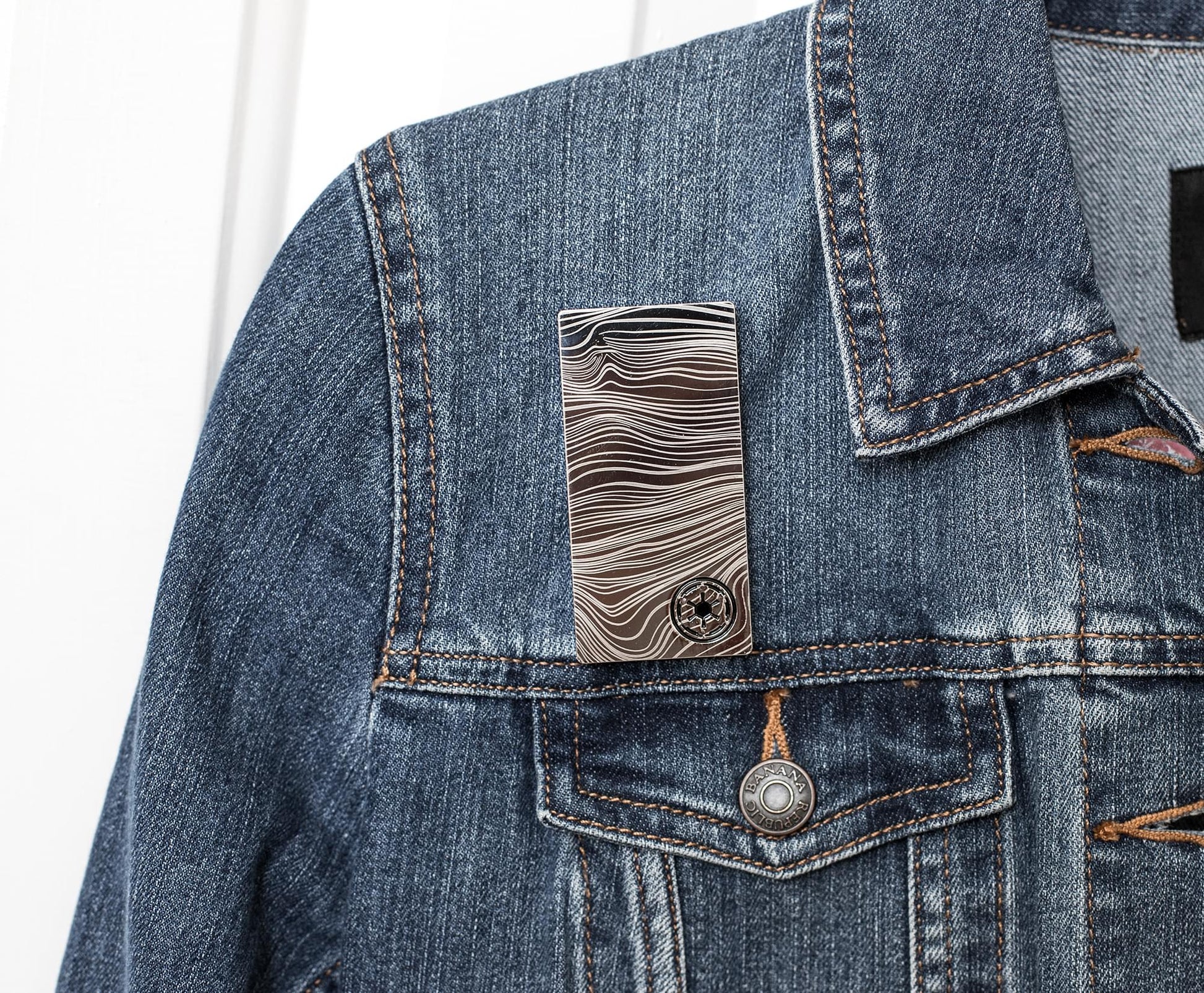 Accessorize any look with this Beskar Credit Replica Enamel Pin inspired by The Mandalorian. Made of durable base metal, this 3-inch magnetic pin is authentically designed like a shiny, metallic slab of Beskar Credit — the Imperial currency used in the hit Disney Plus Star Wars series. Measuring 3 x 1.5 x 1/4 inches, this collectible enamel pin features two strong magnets that allow it to be easily worn as an everyday accessory.